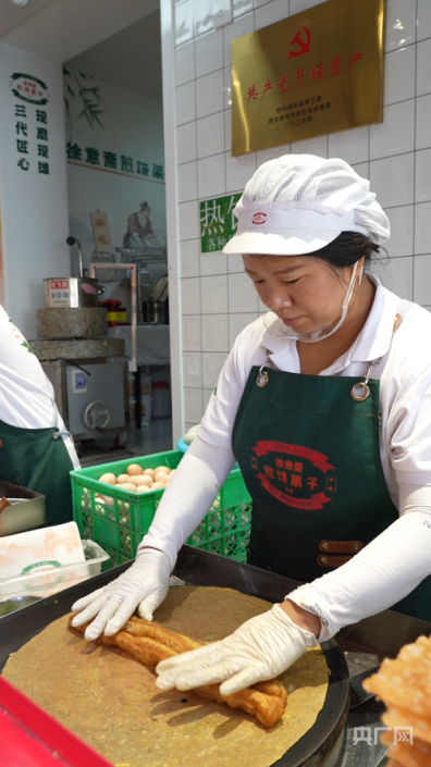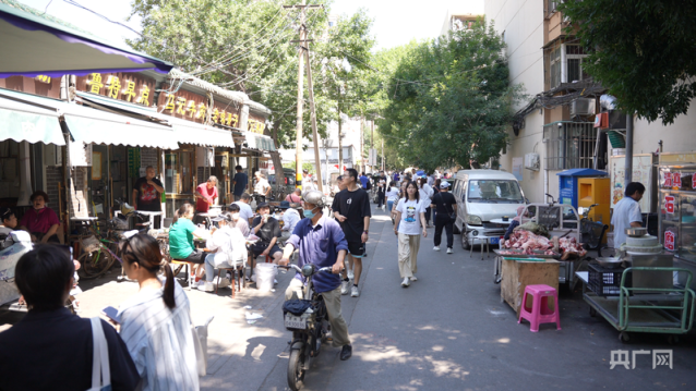 “新炸出锅的卷圈儿又香又脆!”“老味儿酸梅汤,解渴去暑!”“煎饼馃子多少钱?给我来两套带走!”“‘老豆腐’什么味的,我在这儿吃!”……走进红桥区西北角特色街区(下称“西北角”),商户们的叫卖声与游客们的询问声相互交织,烟火气伴随着各类美食的香气,在氤氲的晨雾中升腾。